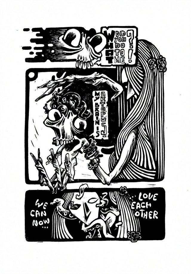 Linogravure sur papier 160g tirée à 15 exemplaires numérotés et signés.